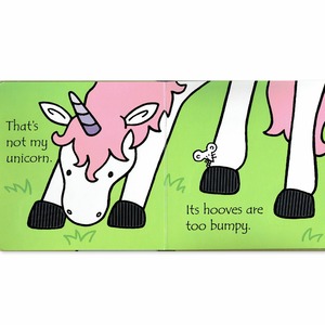 どの本も「That's not my...」「It’s ○○ is too △△ 」という文章がメインで構成されており、「ふわふわな耳」「ざらざらの舌」「ぼこぼこのひづめ」「つるつるの卵」など…
