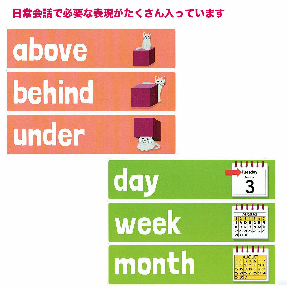 count on,count backにはじまり、幅や長さ、前後の位置関係、図形やカレンダー関連の言葉など…算数だけに止まらないさまざまな数字関連の用語が入っていますので、日常の語りかけにつかうことができます。