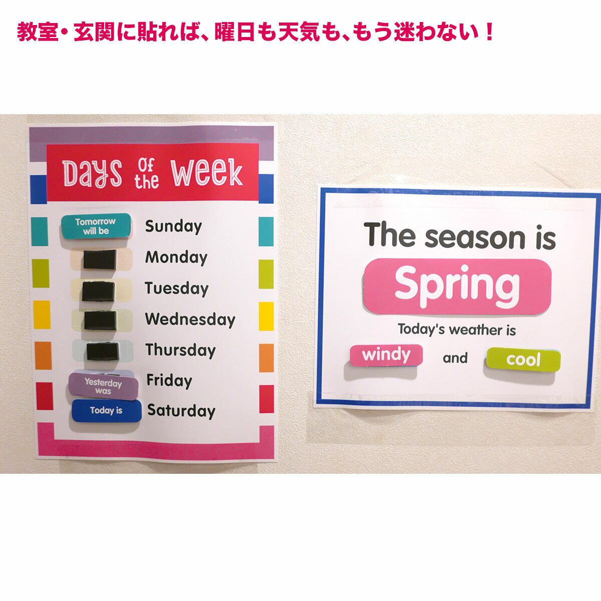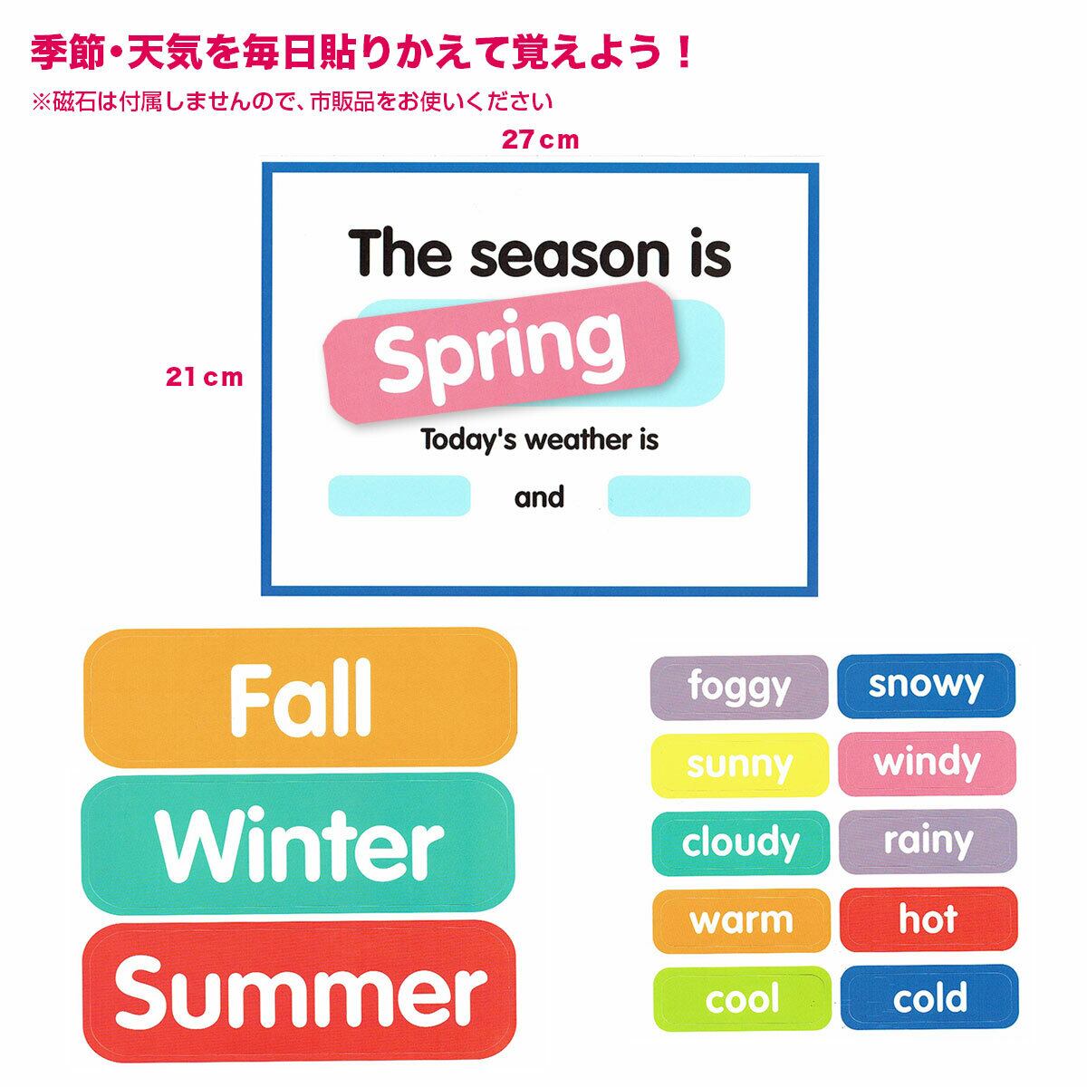 英語教室やおうちでの掲示にぴったりな「曜日・季節・天気」をマスターできるカレンダーセットです。