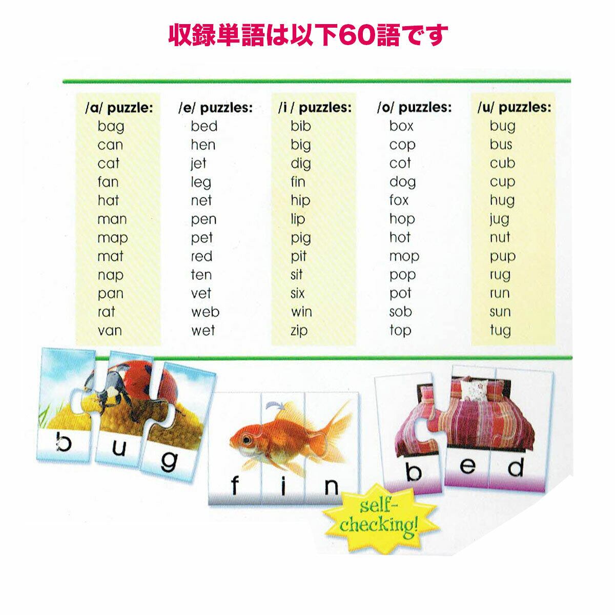 各母音12語ずつ収録されていますので、フォニックス読みの練習にもどうぞ!