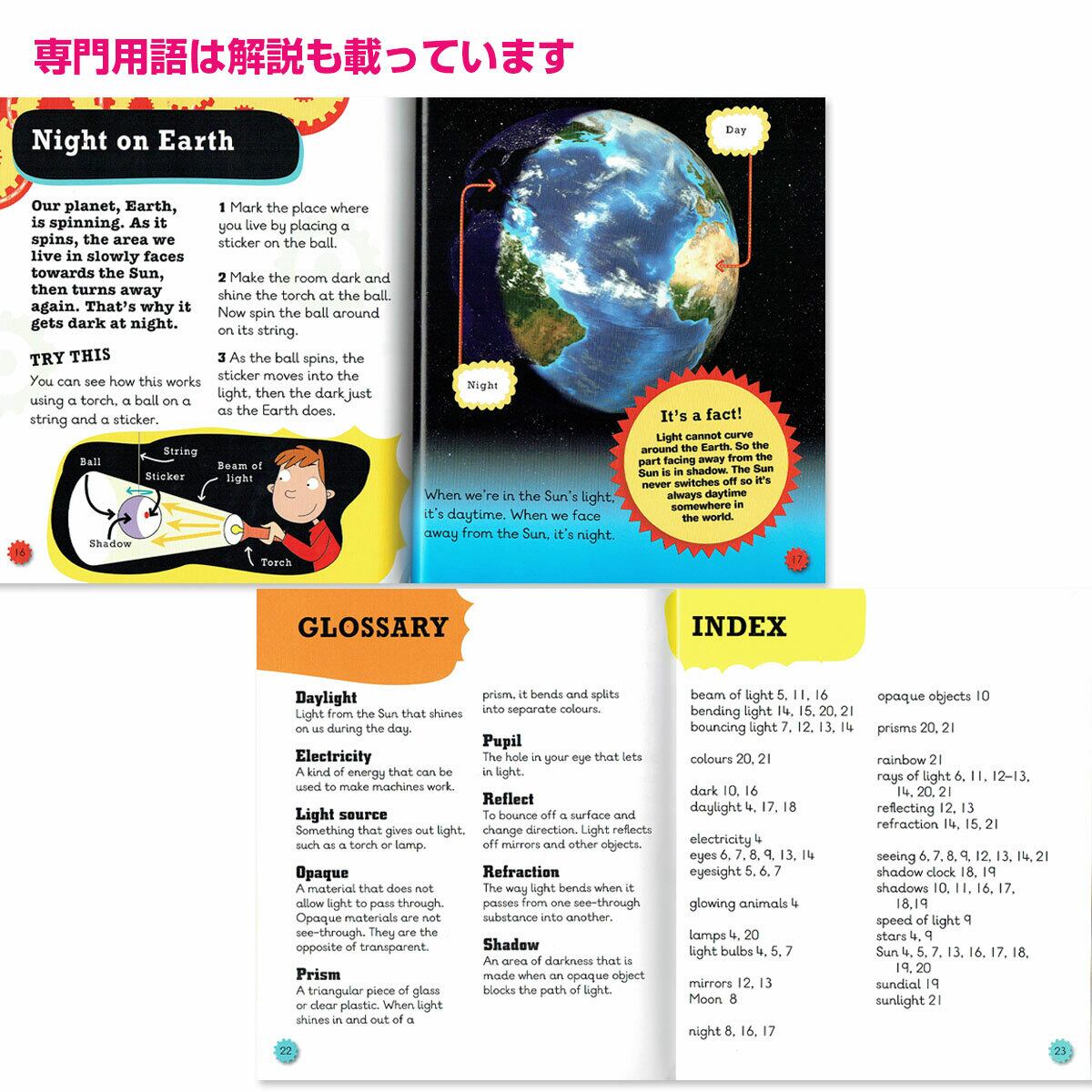 難しい専門用語は最後に解説されていますので、ある程度英文が読めるお子様でしたら、自分で調べることができます。