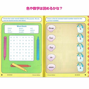幼児さん(5~6歳)を対象としたこちらのワークでは、簡単な英単語や英文の読みにトライできます。