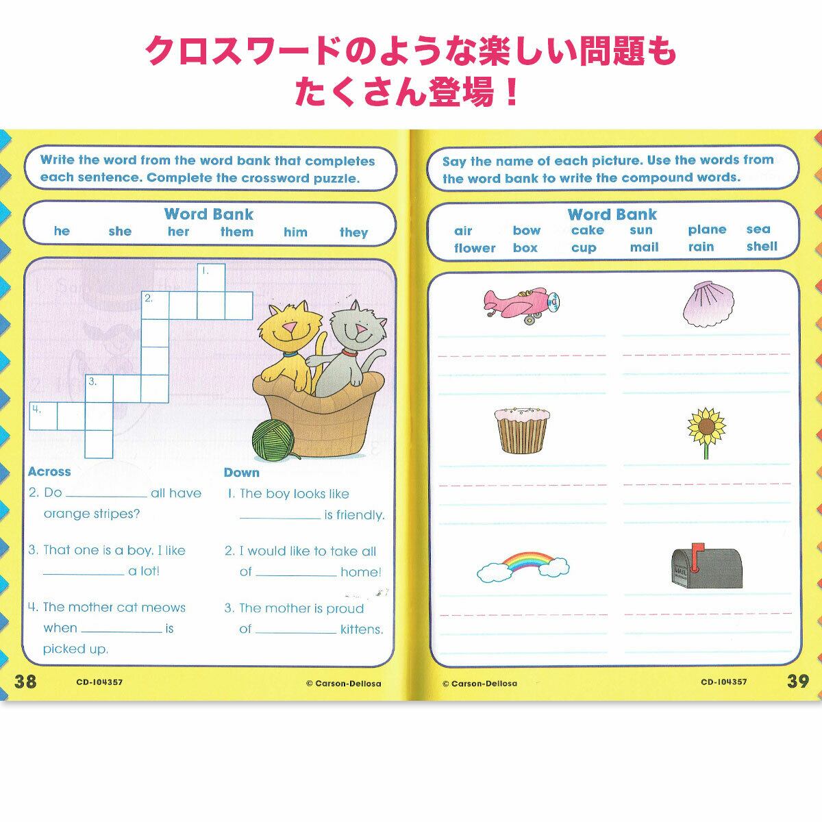 英語圏の小学校1年生(6~7歳)が対象で、英語のパズルやアクティビティを楽しみながら、サイトワードや身近な単語をたくさん覚えられます。