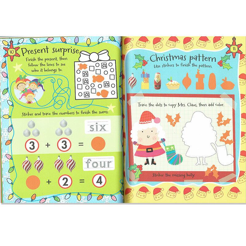 学習要素というよりも、クリスマスのシールをぺたぺた貼って楽しく遊ぶイメージですので、一日の学習の最後などにご褒美として楽しむと良いと思います。