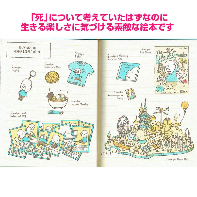 おじいちゃんが死んだ後に作ってほしいグッズリスト(おじいちゃんTシャツ、おじいちゃんカード、おじいちゃんラーメンなど…)があったり、こんな神様にいてほしいリストがあったり、みんなを見守るために、月になったり、かさぶたになったり、風でくるくる回るビニールになったりしようかな…と書かれていたり。