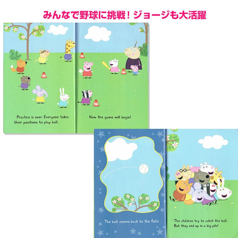 ペッパの絵本は文字数が多いものが多いのですが、こちらは子供たちでも読みやすいごく簡単な英文で書かれています。