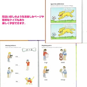 アルファベットを読みながら、同じアルファベットで始まる単語を探したり、絵の中から指定された単語をみつけたり、1ページ1~2行のフォニックスを意識した簡単な英文を読んで、面白いストーリーを楽しんだりすることができます。