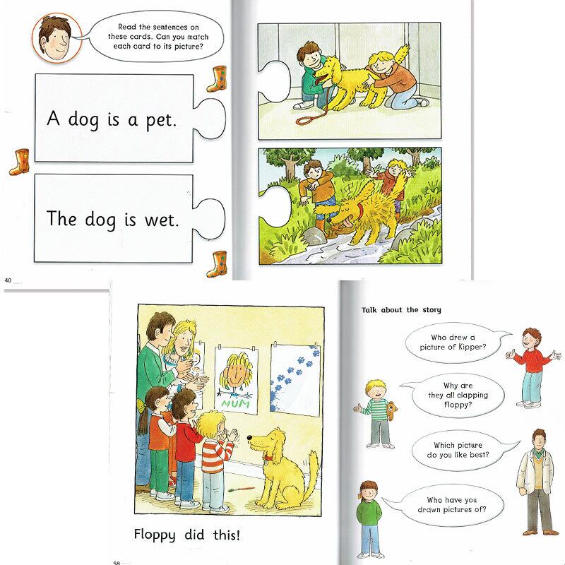 教科書といっても、日本の教科書のようなカタい内容ではなく、Biff,Chip,Kipperの三兄弟と、おちゃめなパパ、しっかりもの?のママが、サザエさんのような日常的でコミカルなお話を繰り広げてくれますので、子供も大人も続きを読みたくなり、ついつい何冊も集めたくなるシリーズです。