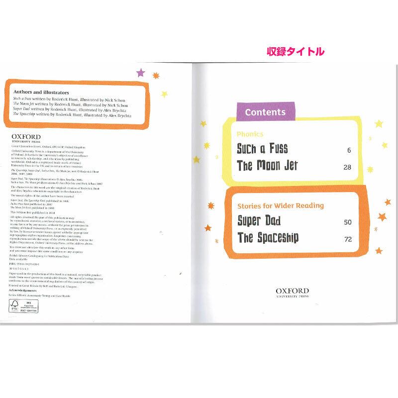 イギリスの小学校の約80%以上で教科書として採用されている「Oxford reading tree」ことORTのStage2から、人気の4冊を集めた新版のORTです。