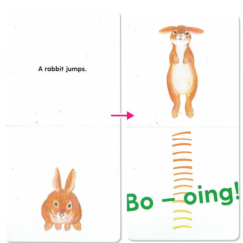 絵本を縦に開いて、元気いっぱいの動物たちと一緒にたくさんジャンプをしてみましょう!