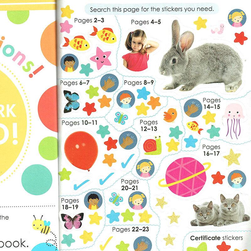 対象は幼児さんで、かわいい写真やイラストが満載のワクワクするワークです。